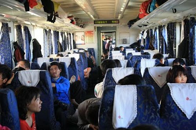We then caught the train north to Jiayuguan - a journey of about 2 hours for the cost of about £3.50. Here is a view in our carriage.
